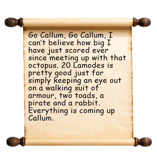 Horus 32, Louie 29, Raymond 26, Rusty 25, Cletus 16 and the Yeti stone motherless last on 8.